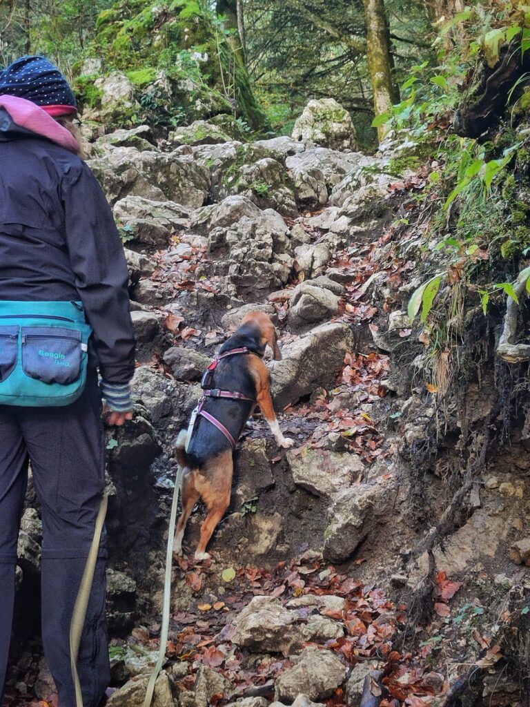 Von hier geht es in nur wenigen Autominuten weiter in Richtung Landesinnere. Ziel ist diesmal ein kleiner versteckter Wasserfall namens „Slap Peracica“. Unser Auto stellen wir am Waldrand ab und begeben uns erst einmal steil bergab. Nach 15 Minuten erreichen wir das kleine Idyll mitten im Wald. Rund zwei Meter fällt das saubere Wasser hinunter in ein kleinen See. Ringsherum gibt es reichhaltige Flora mit vielen spannenden Pflanzen. Entlang des kleinen Bachs könnte Freddy wohl den ganzen Tag laufen. Da wir aber nicht wissen, wo das Ganze endet, laufen wir den Bach hinauf zurück zur Straße, an dessen Endet das Auto steht. Wie immer wenn wir uns auf den Rückweg begeben sinkt die Lust unseres Vierbeiners. Darum gibt’s für die bereits geleisteten Meter am Auto für alle einen kleinen Snack.