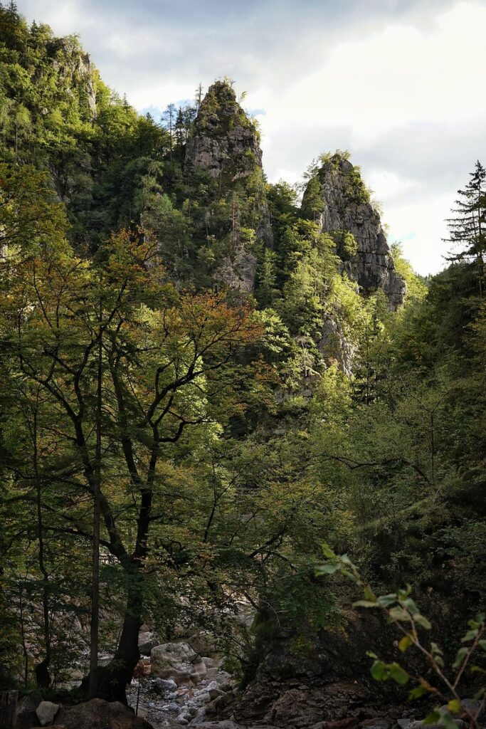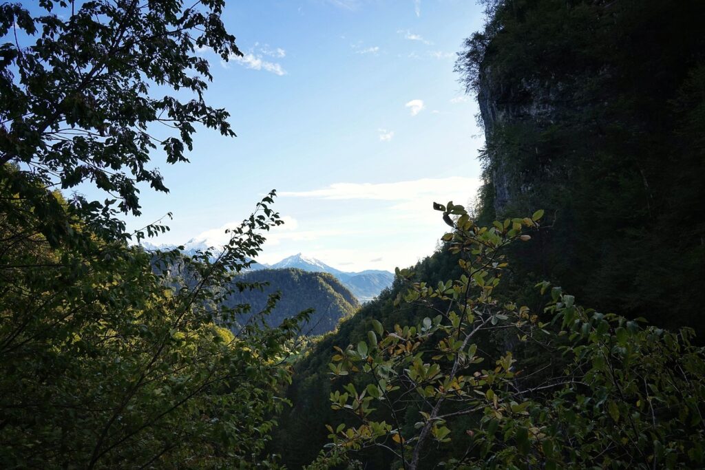 Empfangen werden wir dabei so, wie wir Slowenien auch verlassen haben, mit besten Herbstwetter. Unser erstes Ausflugsziel ist die Schlucht „Pokljuka Gorge“. Der Weg zum offiziellen Parkplatz ist zwar laut Schild nur für „Landowner“ gestattet, in diesem Fall fühlen wir uns einfach mal so und passieren die Straße.