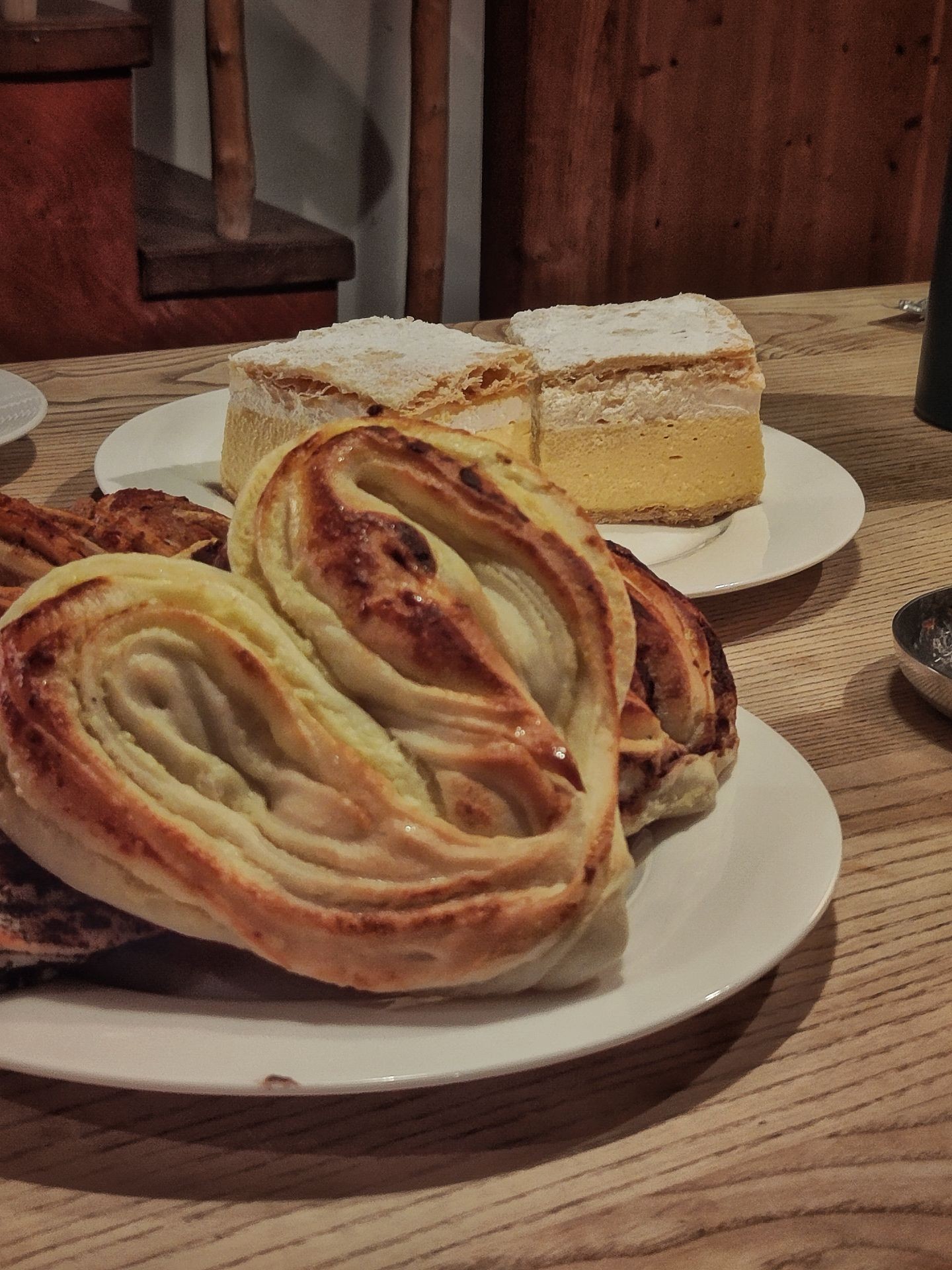Snack ist auch das richtige Stichwort für den nächsten Stopp. Aus Erfahrung wissen wir um die guten Backkünste der Slowenen und um die hier ansässige Spezialität: Bleder Cremeschnitte. Also besuchen wir in „Bistrica pri Trzicu“ eine Bäckerei. Leider ohne Cremeschnitte, dafür mit leckeren Börek Kringel, vier verschiedenen süßen Brezel-Teilchen und vier Milchbrötchen ähnlichen Stängeln. Der Cremeschnitte wegen besuchen wir nochmal einen örtlichen Supermarkt. Auf dem Weg fällt der aufmerksamen Beifahrerin dabei das Schild zum Ausflugsziel: „Dovzan Gorge“ auf. Bevor wir uns dahin begeben, werden wir doch noch fündig und packen neben ein paar Keksen für die nächsten Tage auch noch zwei Cremeschnitten ein.
